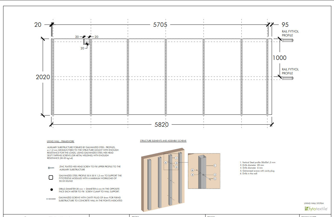 • Tehnologija: Ovaj sistem kačenja panela razvijen je na prestižnom Univerzitetu u Sevilji kao deo patentiranog Fytotextile® sistema.